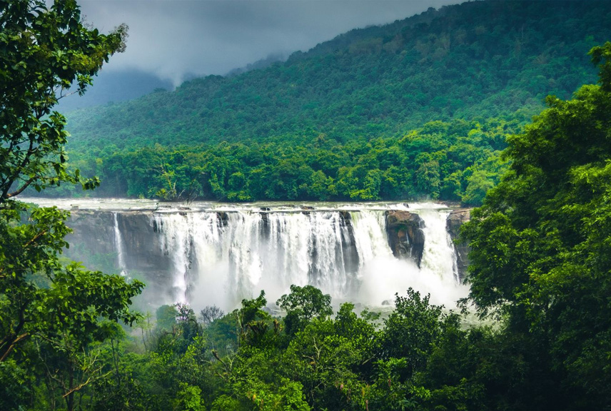 Athirappilly Waterfalls, often referred to as the "Niagara of India," is the largest waterfall in Kerala and one of the most famous tourist attractions in the state. Located in the Thrissur district, it is part of the Chalakudy River and is surrounded by lush greenery and tropical rainforests.